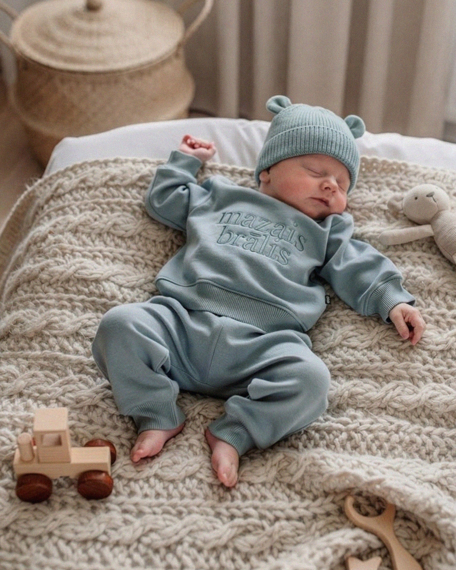 Every garment is lovingly produced in our local workshop in Latvia, where skilled artisans transform premium materials into beautiful, personalized clothing. Our hands-on approach ensures exceptional attention to detail and maintains our high standards of craftsmanship.